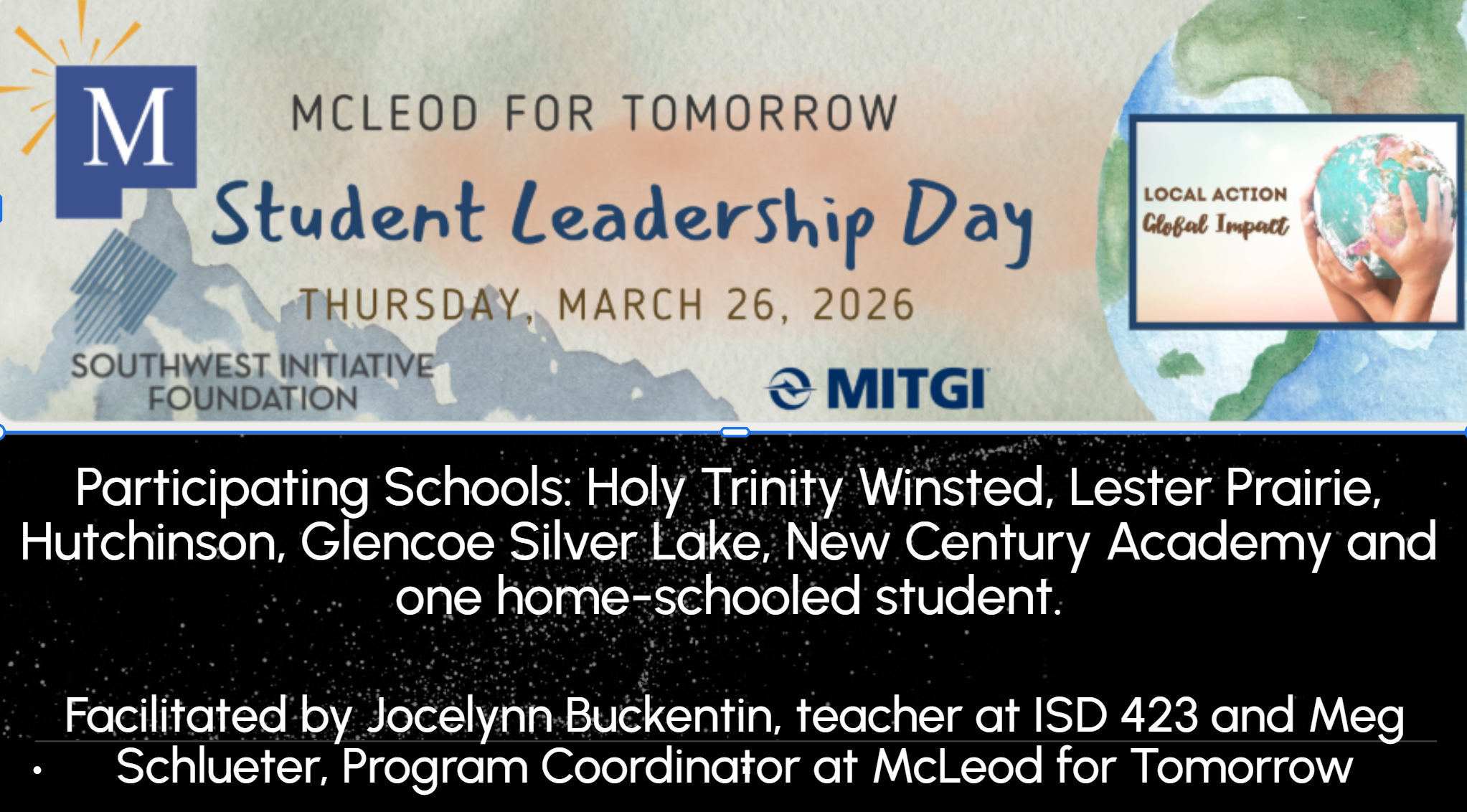 In addition, Liz Danielson invited students to continue their civic engagement by participating in the upcoming McLeod County Housing Forum on April 7, emphasizing that students have an immediate opportunity to apply their leadership skills and have a voice in shaping the future of their county.
